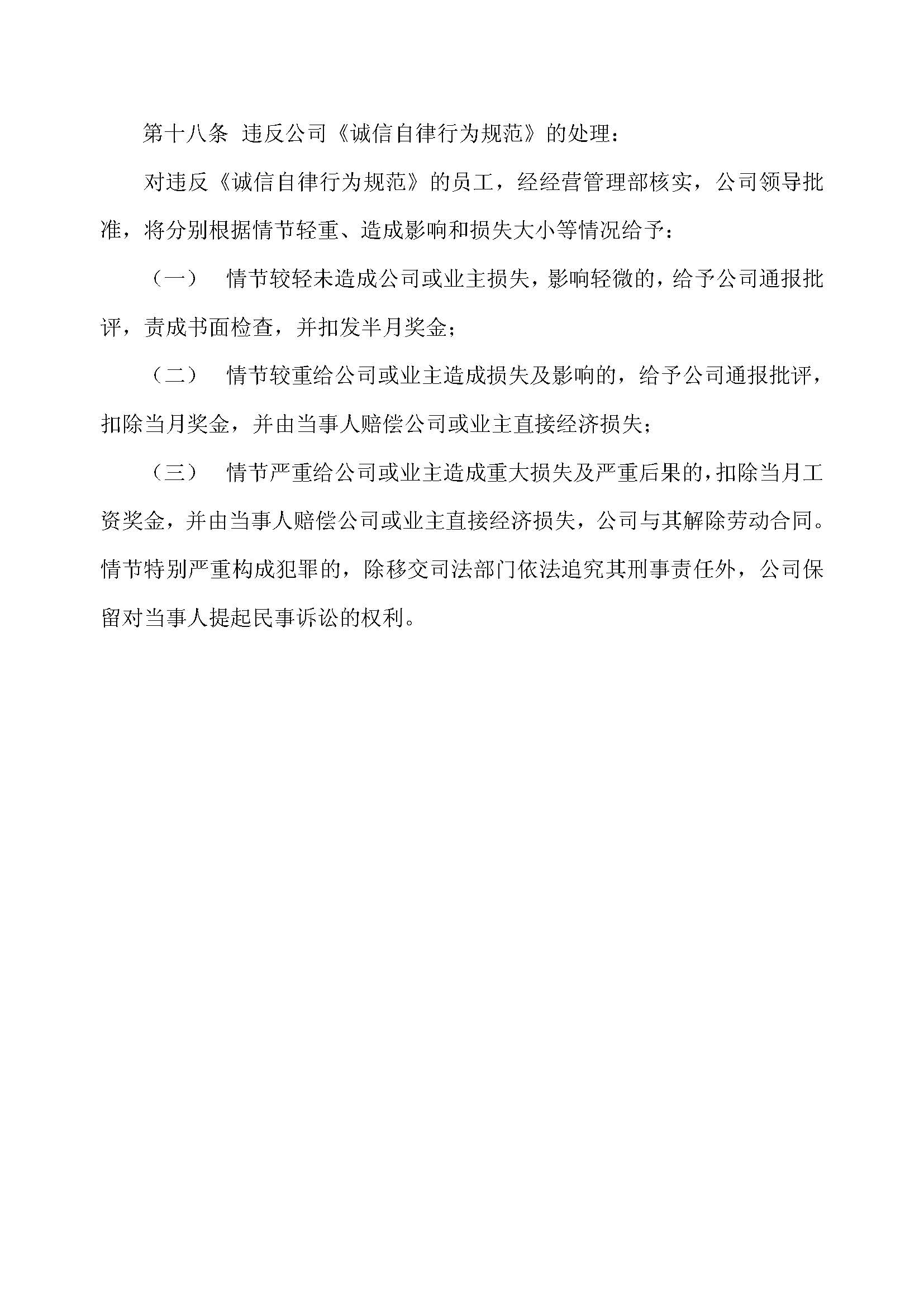 第十八條       違反公司《誠(chéng)信自律行為規(guī)范》的處理: